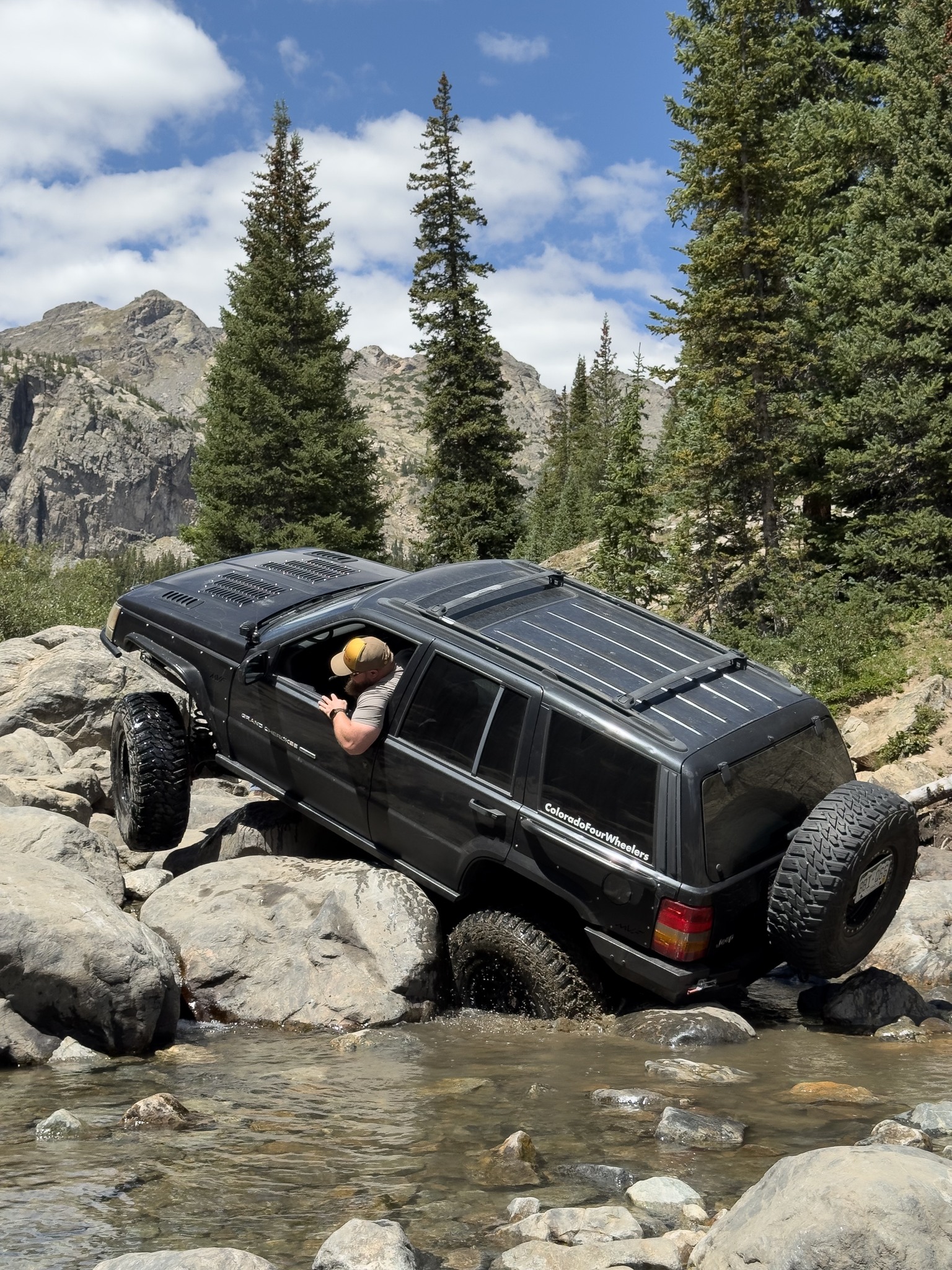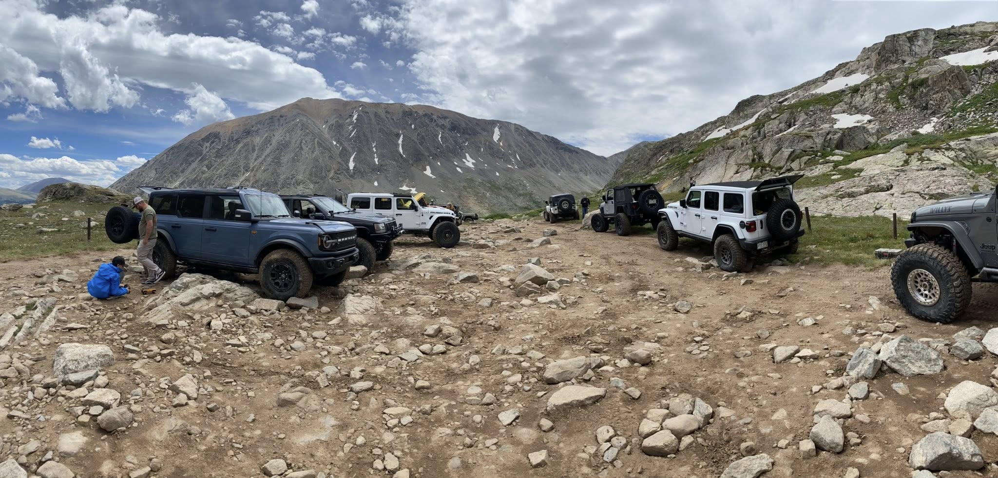 We had a total of 10 rigs with 3 being guests. All went well starting with a meetup at Safeway in Leadville and 8am. We then made our way to the staging area and met up with the Parks. After airing down we made our way to the trail and had a very smooth run all the way up to French Creek. We had everyone drive the “Notch” and “Steep Rock” with no issues or winching and the most exciting part was that everyone took the hard line on the left side of “Steep Rock”. The consensus is that it’s steeper and scarier but may actually be easier.